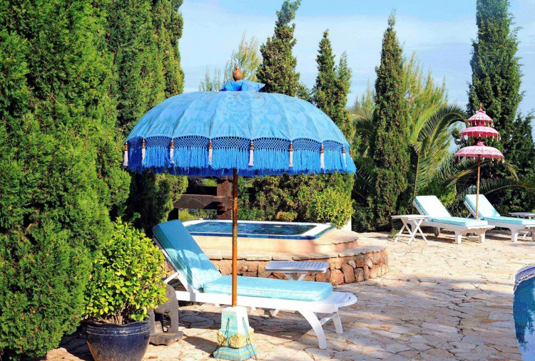 Роскошная вилла общей площадью 547 кв.м., распределенных между несколькими строениями, расположенная на вершине холма с панорамными видами на море и на долину, окруженная частной парковой территорией площадью 17000 кв.м. Это тайный оазис для спокойствия и уединения,рсположенный между Сан Карлосом и Санта-Эулалией, всего лишь в 10-минутах от городской жизни. На вилле есть 5 спален типа сьют, главная спальня в основном здании с двумя террасами, ванной комнатой en-suite и гардеробной, еще три роскошные спальни с ванными комнатами en suite в сообщающихся виллах, а также отдельный гостевой коттедж соспальней, ванной комнатой, кухней и террасой. На территории также находится домик для обслуживающего персонала. Вилла окружена ухоженными садами и природным парком, здесь находятся несколько террас и чилл-аутов, а также парковочная зоня для 6 автомобилей, гараж на 4 автомобиля, большой бассейн, отлично интегрированный в окружающий ландшафт, с террасой-солярием и джакуззи, балиниезийский храм-беседка для медитаций, декоративные пруды с рыбками, зона для барбекю под навесом с большим обеденным столом, терраса чилл-аут напротив гостиной, увитая цветами беседка для чаепитий, а также ослиная роща (здесь на территории 10000 кв.м. на свободе живут три ослика).