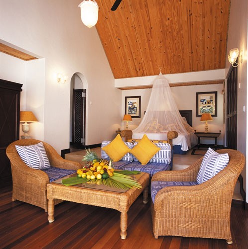 - Individual Chalet: 60 м(включая веранду). Построены на сваях и увенчаны тростниковыми крышами; состоит из спальни с кроватью queen-size или двумя кроватями twin, ванной комнаты с джакузи, открытого душа в африканском стиле, веранды с видом на море.
