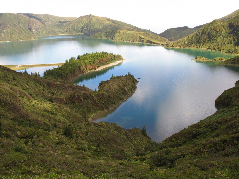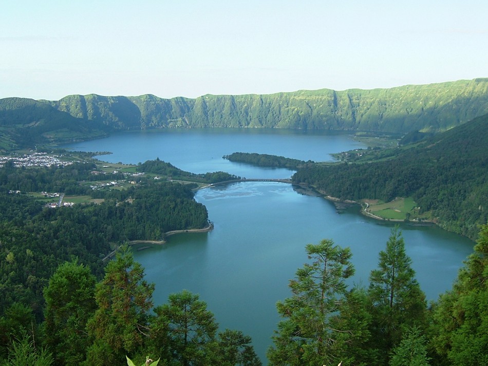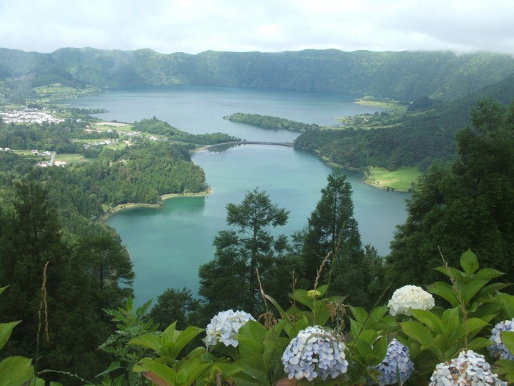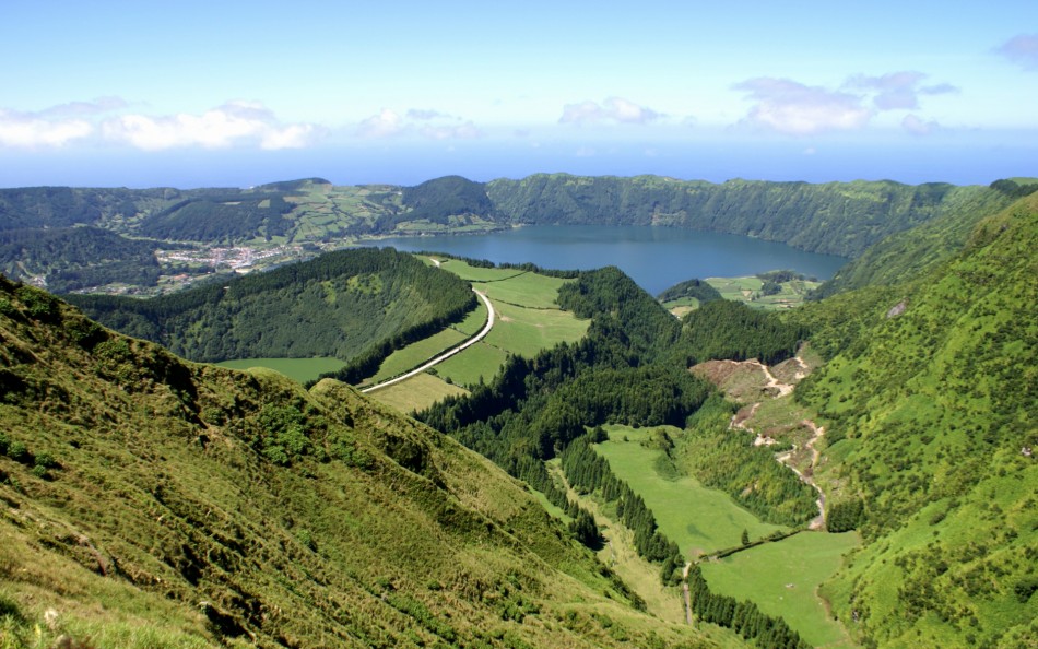 Остров Сан-Мигель — самый большой остров архипелага, приблизительно 65 х 16 км. На острове есть не мало красивых мест. Природа и естественная красота острова, озера, потухший кратер вулкана (приблизительно 12 км в диаметре), никого не может оставить равнодушным. За то, что на острове множество лесов и лугов, остров Сан-Мигель часто называют «Зеленым островом». «Озеро Огня» — огромное совершенно прозрачное озеро. Здесь очень спокойно и красиво.