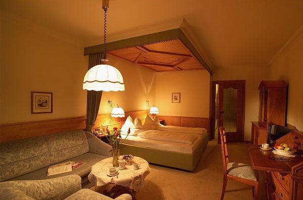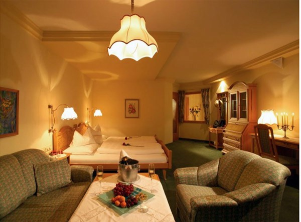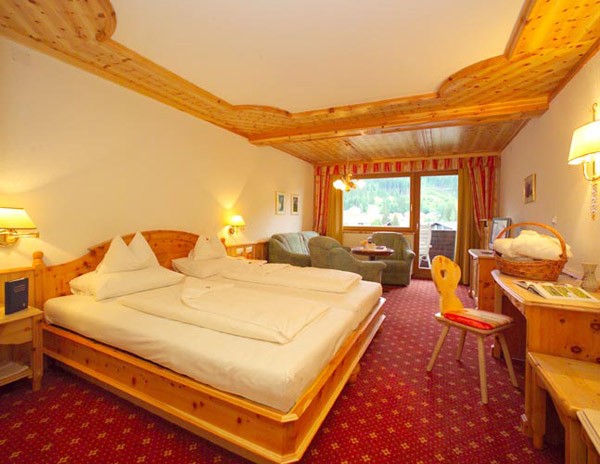 - Double Room/ Swiss pine wood for 2 persons: в номере — мебель из швейцарской сосны и ковры из натуральной овечьей шерсти, состоит из спальни, ванной комнаты, балкона. В номере не разрешается размещение с собаками.