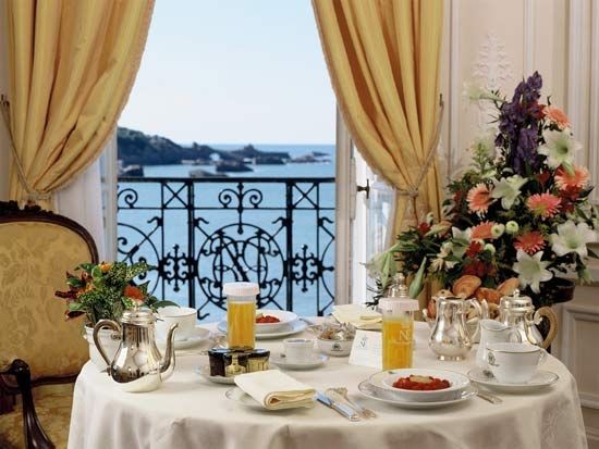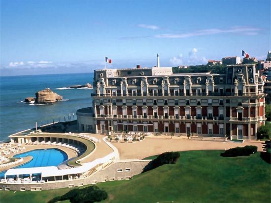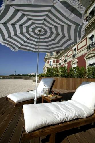 Hotel du Palais (дословно — «Дворец») соответствует своему названию, гармонично сочетая в оформлении элегантную сдержанность и изысканную роскошь эпохи Наполеона III: каждая рощица местного парка, грациозные очертания величественной архитектуры и аристократическая атмосфера пышных гостиных хранят воспоминания о славных временах для монархических домов Европы. В 1855 году по мановению руки императора для его царственной супруги императрицы Екатерины на самом берегу Бискайского залива была воздвигнута резиденция, получившая впоследствии название «Вилла Евгении». Символ органичного симбиоза роскоши и поэзии, дворец очень скоро стал центром светской жизни и олицетворением Биаррица, прославленного «курорта монархов». В течение 16 последующих лет императорская чета проводила каждое лето в Биаррице. За это время здесь побывали представители многих аристократических фамилий и выдающиеся деятели той эпохи: королева Испании Изабелла, король Бельгии Леопольд II, австрийские князья Меттерних, «железный канцлер» Отто фон Бимарк и писатели Проспер Мериме и Октав Фейе. Лето для императорского дома было непрекращающимся праздником. Балы сменялись пикниками, светскими раутами, фейерверками и морскими прогулками. В 1880 году вилла перешла в собственность Парижского банка, а в 1893 — стала грандиозным отелем-казино, продолжающим привлекать представителей «сливок общества» со всех уголков Европы. Этот период особенно известен своими «русскими сезонами». Ни один из великих князей не обошел своим вниманием Биарриц: роскошные балы посещали Константин, Алексей, Владимир, Борис, Кирилл, Андрей и Дмитрий.