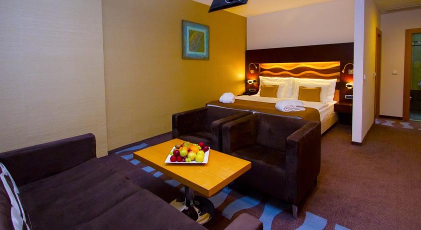 В номерах люкс есть два дополнительных ЖК-телевизора (один над кроватью и один в ванной комнате), гидромассажные ванны для 2 человек, банные халаты и тапочки в ванной комнате. Делюкс номера обставлены удобной диван-кроватью, что делает их идеальным местом для семей или группы друзей.