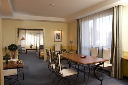 Business Suite (70 кв. м) — с видом на боковую улицу или Andr?ssy Avenue; состоят из спальни, гостиной с обеденным столом на 6 персон, ванной комнаты с джакузи и балкона.