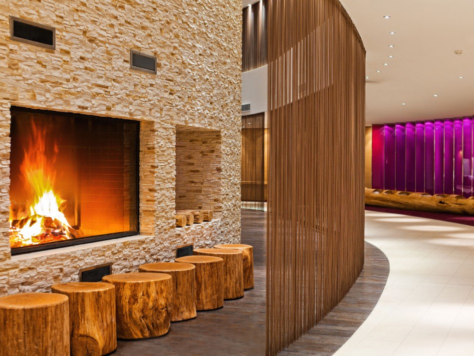The hotel ensures guests experience a relaxing holiday or productive business trip through a variety of life- and time-enhancing services offered at our 2000-square-foot wellness complex. Modern engineering produces atmospheric conditions mimicking the purity of the surrounding mountains, so you get the refreshment of being outside even while using the indoor facilities. Take advantage of a range of treatments to soothe the body, mind and spirit as well as swimming pools for adults and children, Finnish and bio saunas, a steam room and a caldarium. Maintain your exercise routine at the fitness center equipped with TechnoGym equipment and open all day.