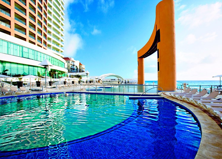 на первой линии просторного белоснежного пляжа отельной зоны Канкуна.