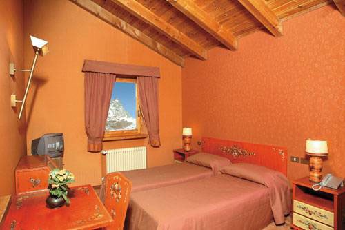 Standard Room — уютные номера, состоящие из спальни и ванной комнаты, выходят на горы и главную улицу Червинии.