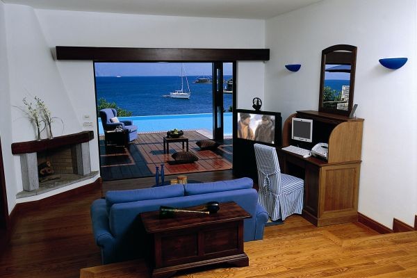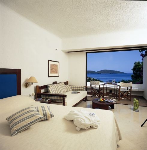 - Deluxe Hotel Suites with Sea View (55 м2) — расположены в главном здании. Состоят из спальни и гостиной (в некоторых номерах комнаты разделены дверью). Размеры гостиной позволяют разместить третьего человека. В номерах одна или две ванные комнаты с джакузи, отдельной душевой кабиной и маленьким телевизором. В некоторых номерах есть паровая баня и тренажёр. С балкона открывается вид на залив Мирабелло. Дополнительно в номерах CD и VCR- или DVD-проигрыватели.