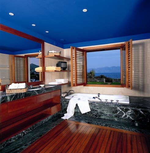 - Palace Suite with Private Heated Pool Sea View (250 м2) — Расположен на второй линии от моря, над Grand Suite и имеет панорамный вид на залив Мирабелло. Состоит из роскошной гостиной с большим обеденным столом, полностью оборудованной кухни, двух спален, персонального тренажёрного зала, двух отделанных мрамором ванных комнат, в одной из которых расположены ванна-джакузи, парная и отдельная душевая кабина. Большая терраса выходит в сад с персональным подогреваемым бассейном с гидромассажем. Дополнительно Bang & Olufsen CD Hi-Fi система, компьютер с принтером и прямым доступом к сети Интернет, цифровой телевизор, принимающий спутниковые каналы, с DVD и наушниками, факс, небольшой телевизор в ванной комнате.