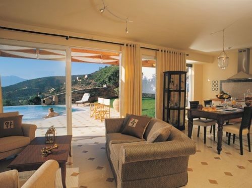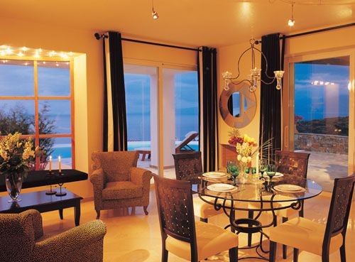 - Superior Spa Villas («Knossos» — «Zakros» — «Driros» — «Itanos») (100-200 кв.м) — состоит из спальни, гостиной, которая может служить дополнительной спальней, 2 ванных комнат, тренажерного зала, парной, сауны, меблированной террасы с собственным подогреваемым бассейном с гидромассажной зоной и встречным течением, имеет вид на море. Максимальное размещение — 4 человека.