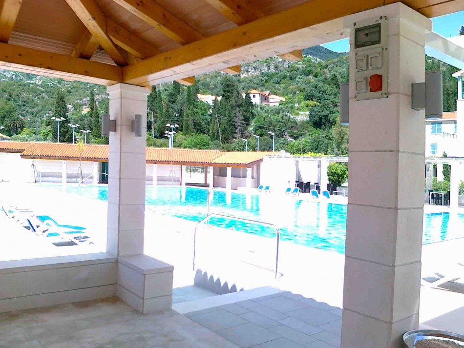 три тенисных корта, для детей игровая площадка,водные спорты,баскетбол,футбол и гандбол