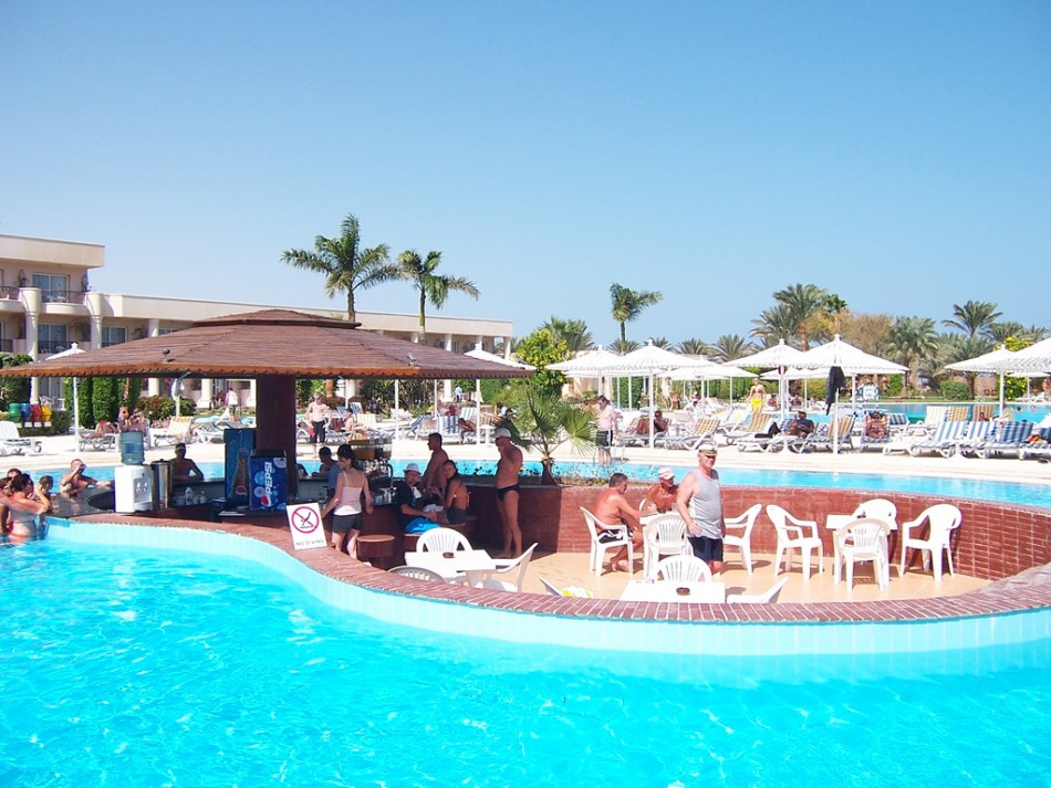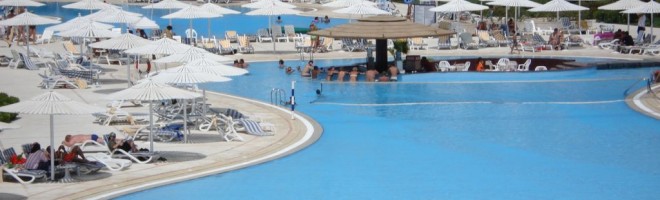 У бассейна: зонтики, шезлонги, матрасы – бесплатно.