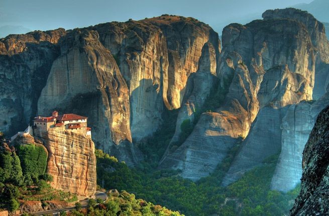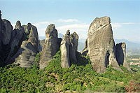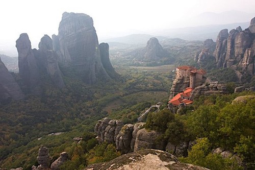 Комплекс православных монастырей Метеоры в Фессалии (центральная часть Греции) – одна из главных достопримечательностей страны. Обители иноков построены на самых вершинах высоких отвесных скал. Этим и объясняется название комплекса – монастыри Метеоры, которое в переводе с греческого означает “парящие в воздухе”.