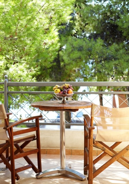 При строительстве отеля в был использован широкий спектр экологически чистых материалов. Так, отельные номера декорированы деревянными полами и потолками, ванные комнаты облицованы знаменитым мрамором Скироса.