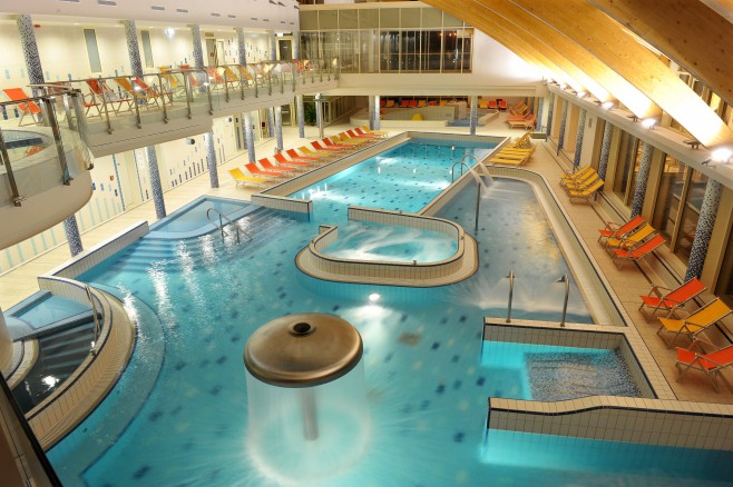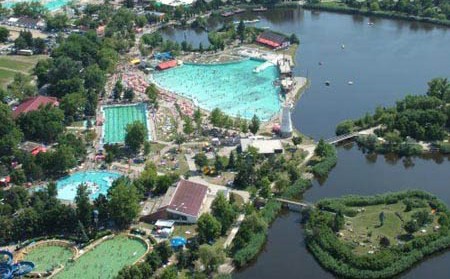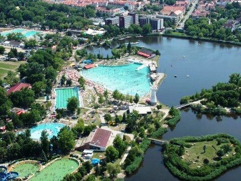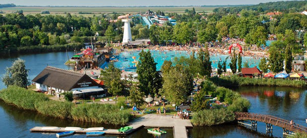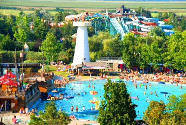 В 2000-м здесь открыли аквапарк, кстати говоря, первый в Венгрии, который уже спустя два года был расширен. На территории его можно прокатиться на 9 горках, самая длинная из которых обладает длинной в 1 км! Конечно, кроме горок, есть множество бассейнов (в том числе и для самых маленьких посетителей), купален, потоков.