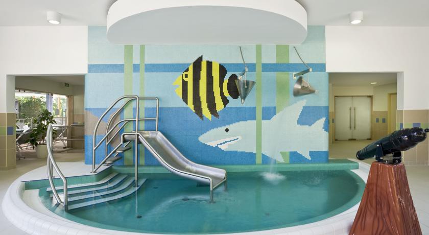 - мини-аквапарк с крытыми и внешними бассейнами, крытая термальная купальня, парковый плавательный бассейн, ступенчатый бассейн Кнайпа, лягушатник