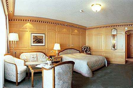 - Elizabeth Suite: 90 м2. Новый и роскошный Suite, состоящий из гостиной, окна которой имеют панорамный вид на горы; балкона; столовой зоны с камином, вмещающей до 6 человек; кабинета со свободным доступом в интернет, iPOD station и большим монитором с плоским экраном; спальной зоны с большим телевизором с плоским экраном; ванной комнаты и гардеробной;