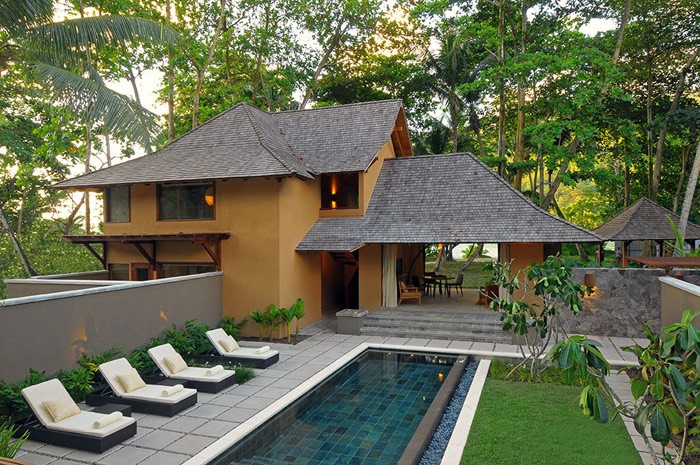 - Family Villa with Private Pool: 350 м2-с тремя спальнями (2 с двумя кроватями)для размещения максимум 6 взрослых. Каждая вилла просторна и стильно оформлена, оборудована просторными ванными комнатами, персональным бассейном, беседкой для отдыха на территории сада, телевизором LCD, бесплатным беспроводным доступом в интернет, компьютером Mac mini, (с возможностью подключения MP3-плеера Ipod, чтения CD и DVD дисков), телефоном, минибаром, винным минипогребом, сейфом и а также всем необходимым для приготовления чая/кофе. Есть возможность нанять личного дворецкого на все время пребывания для выполнения повседневных поручений.