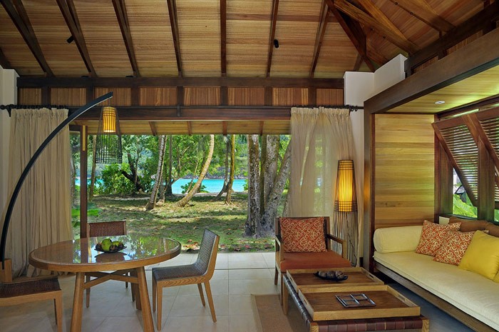 - 1 Bedroom Hillside Villa with Private Pool:5 вилл (120 M?) с одной спальней, для размещения максимум 2 взрослых и 3 виллы (220 M?) с двумя спальнями, для размещения максимум 4 взрослых. Виллы расположены лицом к национальному морскому парку порта Launay. При их строительстве была учтена характеристика местности, т.е. наличие гранитных скалообразований, съигравших свою роль в создании уникальной концепции этих вилл.Они оборудованы персональным бассейном, телевизором LCD, бесплатным беспроводным доступом в интернет, компьютером Mac mini, (с возможностью подключения MP3-плеера Ipod, чтения CD и DVD дисков), телефоном, минибаром, винным минипогребом, сейфом, и всем необходимым для приготовления чая/кофе. Есть возможность нанять личного дворецкого на все время пребывания для выполнения повседневных поручений.
