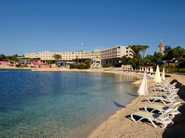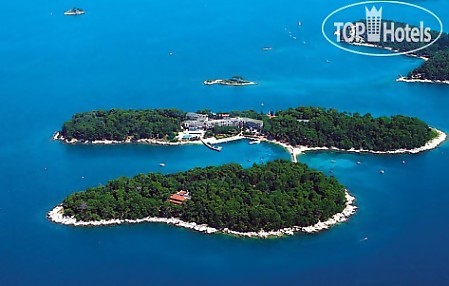 Расположен на острове Святого Андрея, более известном как Красный остров одном из красивейших островов Ровиньского Архипелага, в 10 минутах езды на катере от города Ровинь.