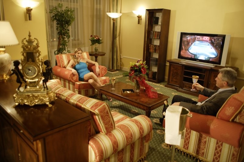 - Wellness suite: двухкомнатный апартамент с балконом, 1 ванная комната с душевой кабиной, отдельный туалет и биде, 1 туалет для гостей, 1 просторная гостиная с мягкой мебелью и плазменным телевизором, 1 спальня, 1 гардеробная комната, размер кроватей 200х200 см, невозможно использовать как TWIN, возможна дополнительная кровать, детская кроватка бесплатно, собственная сауна и джакузи, размер номера 54м2, в номере имеется новый LCD телевизор и DVD проигрыватель с возможностью проката фильмов на рецепции.