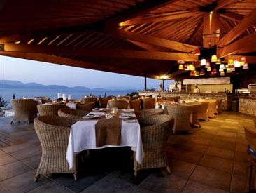 В отеле сервируется большое количество блюд, в т.ч. закуски, салаты и горячие блюда. С наступлением сумерек в районе ресторана зажигаются 250 свечей, что создает очень романтическую обстановку. Ресторан расположен на возвышении, что дает возможность наслаждаться видами Ионического моря.