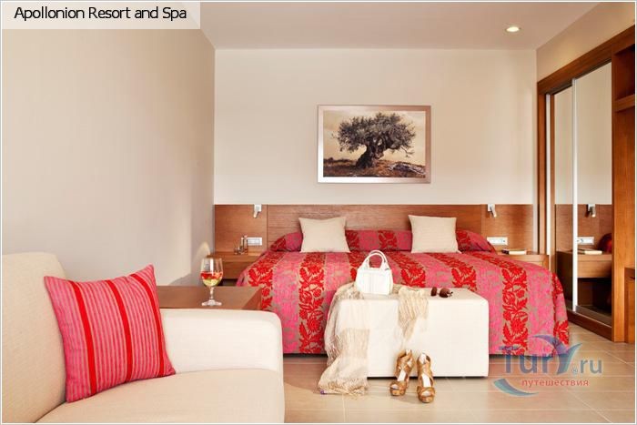 Apollonion Resort and Spa насчитывает 127 номеров, которые разделены на 6 типов. Все они оборудованы и оформлены по высоким стандартам: