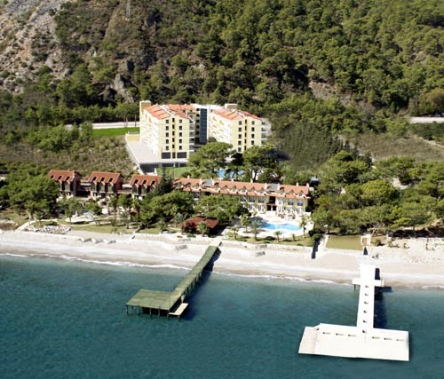 Расположен в 35 км от аэропорта г. Анталья, в 20 км от г. Кемер, в поселке Бельдиби, на берегу моря (подземный переход к пляжу от основного корпуса).