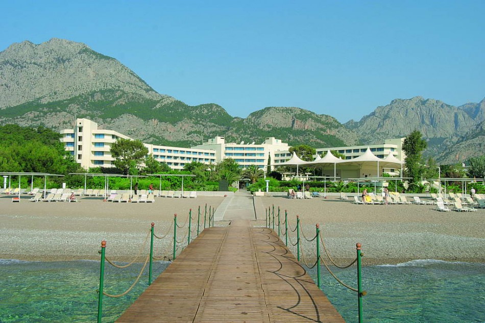 Расположен в 48 км от аэропорта г. Анталья, в 7 км от г. Кемера и в 2 км от поселка Гюйнук, на самом берегу моря.