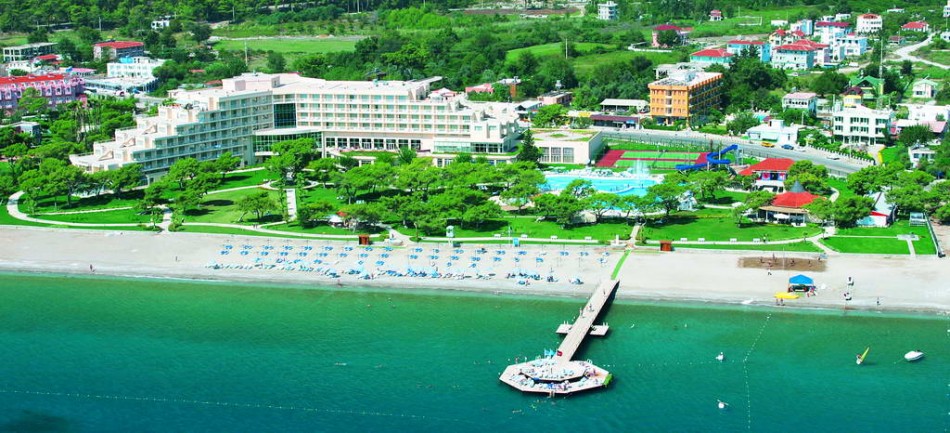 Расположен в 40 км от аэропорта г. Анталья, в 25 км от г. Кемер, в поселке Бельдиби, на самом берегу моря.