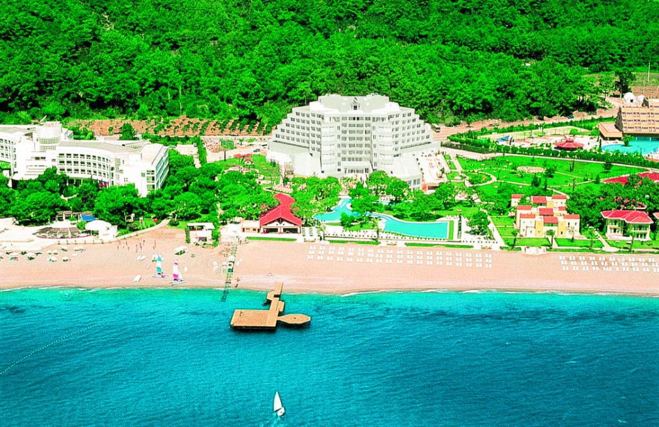 Расположен в 45 км от аэропорта г. Анталия, в 8 км от г. Кемер, в поселке Гойнук, на самом берегу моря.