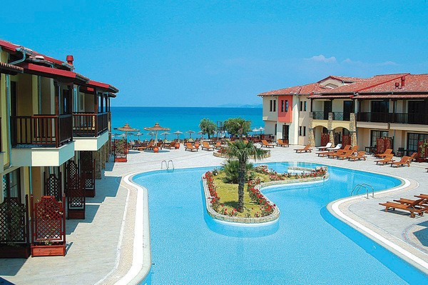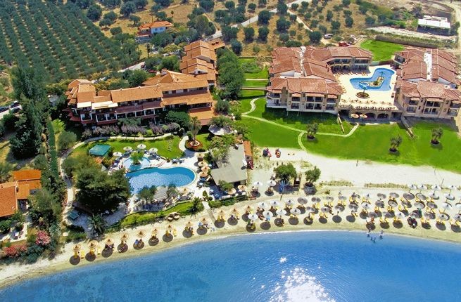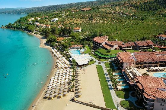 Отель состоит из двух 3-х этажных корпусов: центрального и корпуса с сюитами. К вашим услугам просторные номера, SPA-центр, различные виды спорта и развлекательные программы в амфитеатре, под открытым небом. При отеле собственный песчаный пляж. Созданы условия для инвалидов. Идеальное место для спокойного семейного отдыха на лоне великолепной природы. Курсирует микроавтобус по маршруту из отеля в Неос Мармарас и Никити. Отель построен в 2004 г. и полностью отремонтирован в 2007-2009 годах.