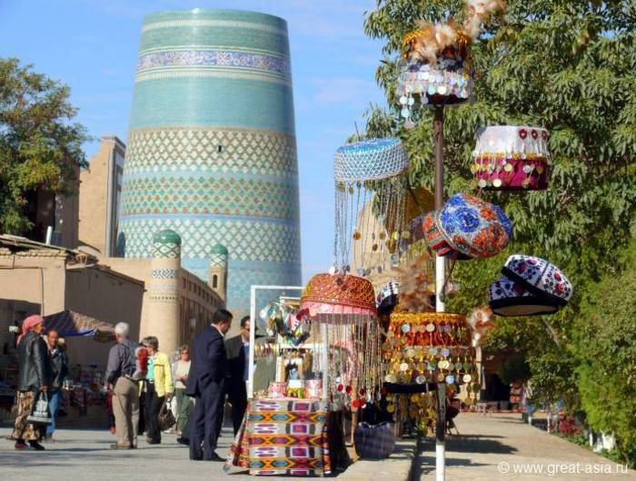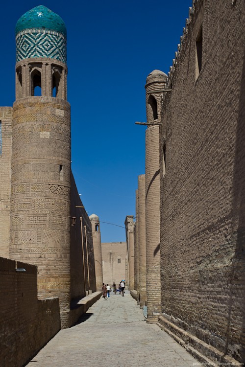 Хива, пожалуй, самый особенный узбекский город. Его история неразрывно связана с историей Туркмении, так как раньше эта территория входила в состав легендарного Государства Хорезмшахов со столицей в Ургенче. Хива – очень древний город. Еще в X веке она упоминается как крупный торговый центр на Великом Шелковом Пути. Все караваны, направлявшиеся в Китай и обратно, делали здесь остановку. С рассвета и до заката, пока были открыты крепостные ворота, через них нескончаемым потоком двигались вереницы навьюченных поклажей верблюдов. В начале XVI века Хорезмское государство стало уделом узбекских кочевых племен, которые основали здесь Хивинское ханство. Однако Хива не сразу стала столицей ханства. Изменение русла Амударьи разрушило действующую столицу Ургенч. И в 1598 году Хива  — этот маленький укрепленный городок стал главный городом государства. Еще в XIX веке Россия отвоевала часть Хивинского ханства, а спустя столетие, в 1919 году уничтожила последнего хана из правящей династии. Так Хива стала столицей новой Хорезмской Советской Народной Республики. А в 1924 году земли Хорезмского оазиса вошли в состав современных Узбекистана и Туркмении. О возникновении Хивы бытует интересная легенда. Якобы город вырос вокруг колодца с невероятно вкусной и прохладной водой Хей-вах, который был выкопан по приказу сына библейского Ноя  — Сима. В старой части Хивы  — Ичан-Кала  — и сегодня можно увидеть этот колодец. Хива – уникальный город, по праву претендующий на звание «седьмого чуда света», благодаря своей подлинной атмосфере «эпохи начала времен». Большая часть города Хивы похожа на музей под открытым небом. И ядро этого музея  — крепость Ичан-Кала. Именно внутри этой крепости сосредоточены все архитектурные шедевры Хивы. Все, кто попадает внутрь крепости, оказываются среди изумительных минаретов, вымощенных камнем кривых переулков, ведущих к медресе с похожей на кружева мозаикой шершавых древних стен. Настоящая восточная сказка!