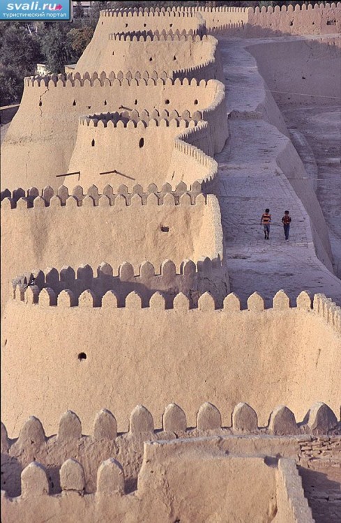 Что такое Ичан-Кала? В древности Хива, как и другие восточные города, делилась на три части: крепость — Куня-Арк, предместье — Дишан-кала и город — Ичан-кала. Сегодня Ичан-Кала – это музей под открытым небом – старая часть города, обнесенная крепостной стеной и превращенная в государственный историко-археологический музей-заповедник. Именно здесь на огромной территории в 26 га сохранен экзотический образ восточного города. Но больше всего поражает то, что Ичан-Кала – не просто застывший город-музей, а живая заселенная часть города. Здесь проживает до 300 семей, в основном они занимаются ремесленничеством. Глиняная стена (более 2 км длиной, высотой до 10 м и 5-6 м толщиной), окружающая город имеет четверо ворот – на каждой стороне света. Западные ворота — Ата Дарваза. Ворота Багча ведут в Ургенч, бывшую столицу Хорезма, ворота Палван открывают дорогу к Амударье и далее в восточном направлении, а ворота «Таш» — в южном направлении.