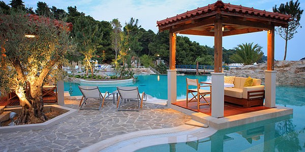 - большой открытый подогреваемый бассейн с каскадами и гидромассажной зоной