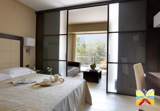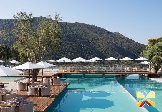 Отель расположен на западном побережье о-ва Корфу, в 17 км от международного аэропорта – деревне Эрмонес.
