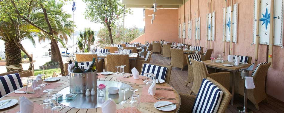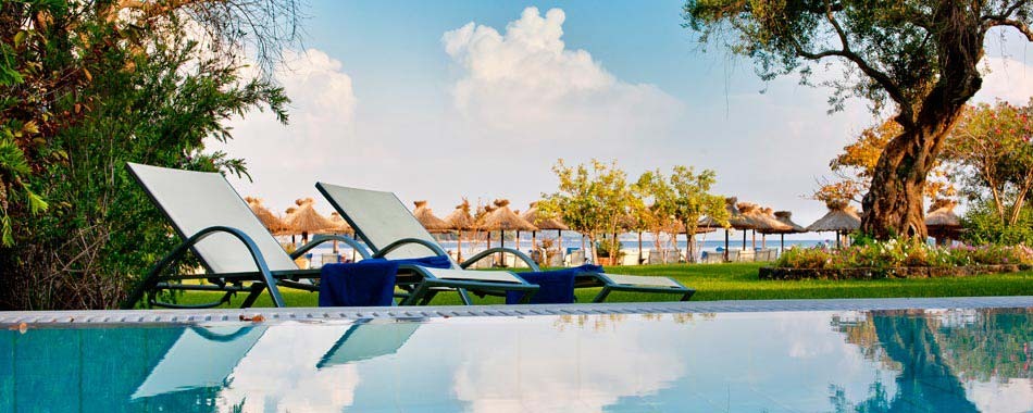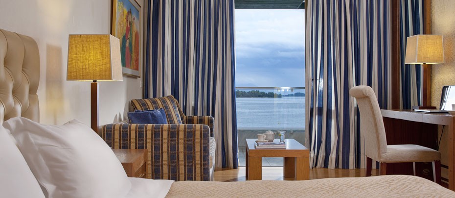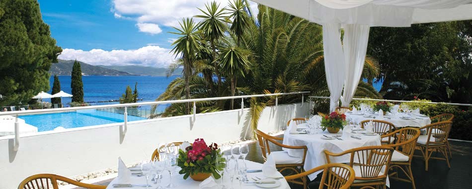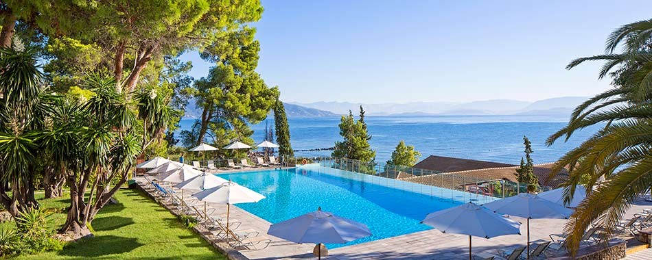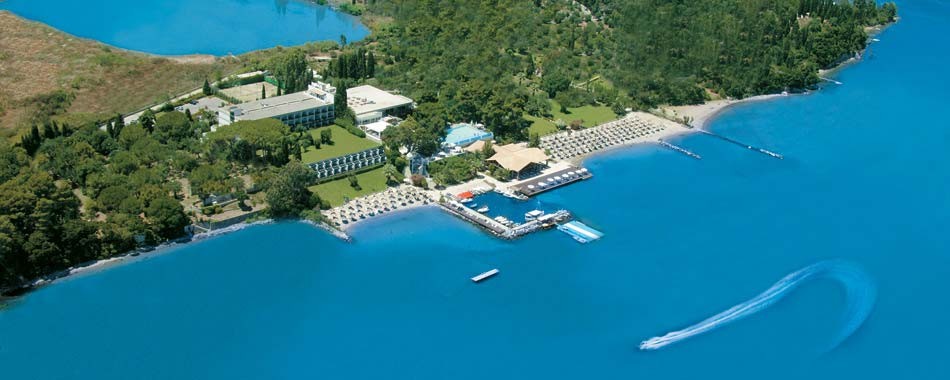Построенный на территории зеленого полуострова, Основное Здание отеля «Kontokali Bay» имеет великолепный вид на сияющие голубые воды Ионического моря, которое отделяет Корфу от Греческого материка с его величественными горами, и с другой стороны, на яхт-клуб в Гувье.
