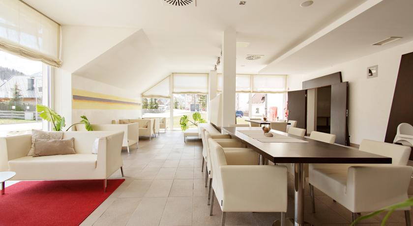 Рядом со стойкой регистрации на 1 этаже размещен бар Klass с открытой террасой, откуда открывается вид на пики Краньски-Горы. Помимо широкого выбора напитков гостям предложат горячие и холодные закуски. Бесплатно предоставляются Wi-Fi и парковка.