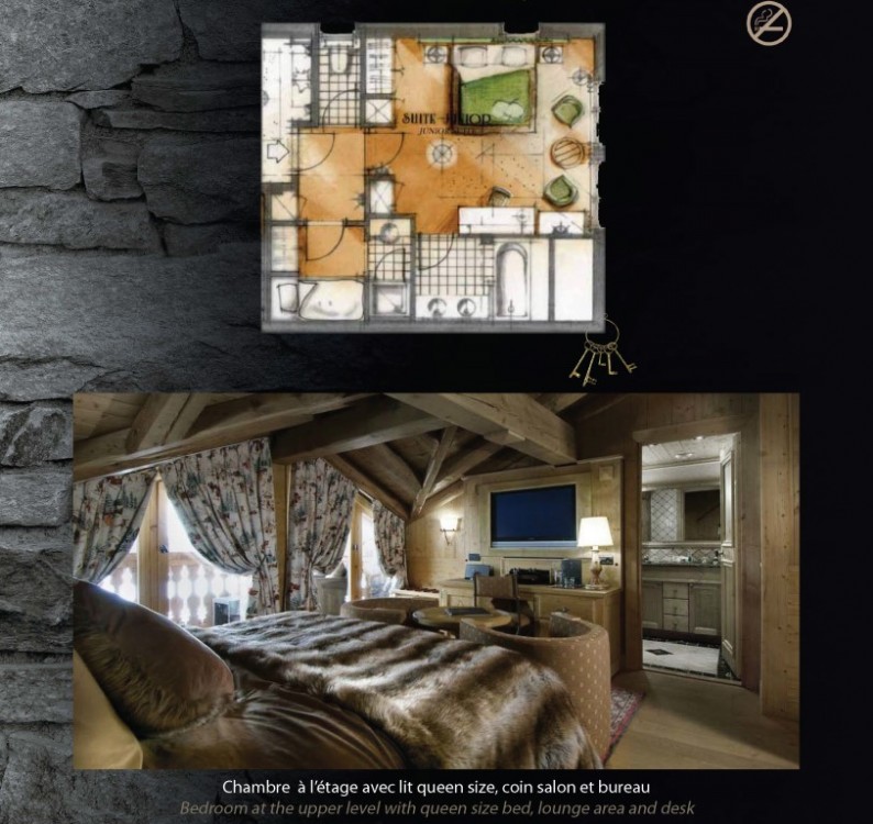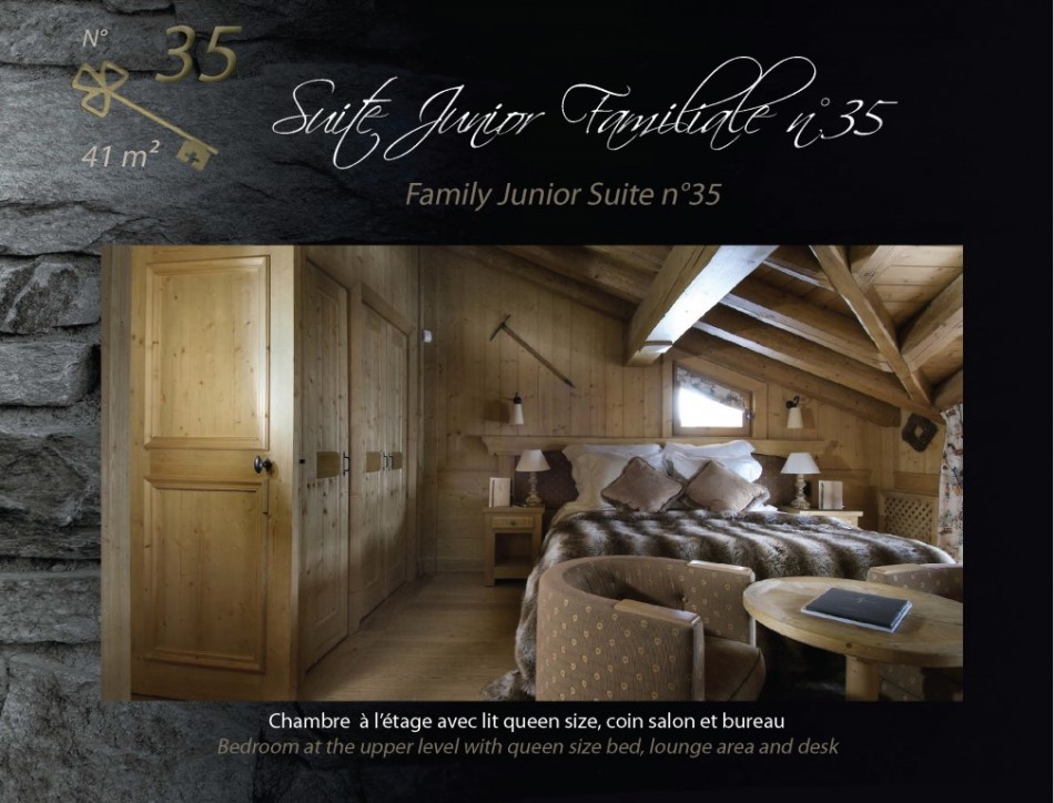 Горнолыжные станции КуршевельДвухэтажное шале, вмещает 4 номера: Executive room №1 (первый этаж), Family executive suite №2 (первый этаж), Family junior suite №35 (второй этаж), Family junior suite №36 (второй этаж).