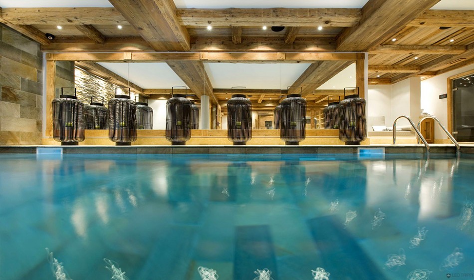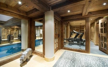В шале 7 спален, у каждой предусмотрена своя ванная комната. Кроме этого, здесь есть крытый бассейн, массажная комната, хаммам и спортзал. Площадь шале 600 квадратных метров. Еженедельно шале готово принимать 14 постояльцев.