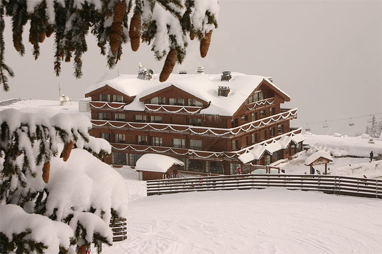 Уютный небольшой отель стоит на склоне горы. До трасс можно добраться на лыжах прямо от порога гостиницы.