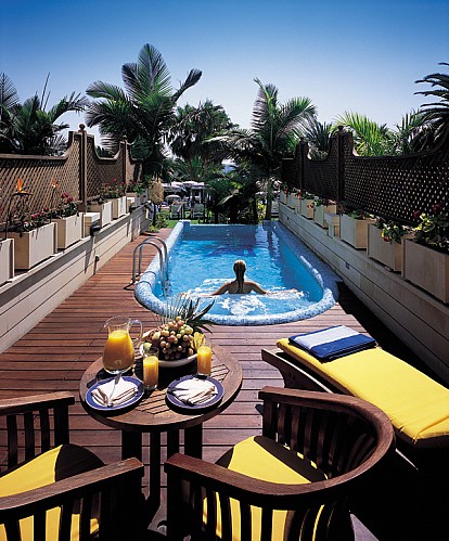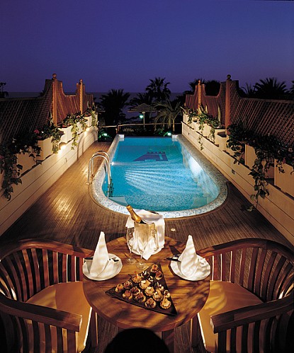 Junior Suite Sea View with Private Pool: 37 м. Расположены в новом крыле главного здания; с видом на море и сады; состоят из спальни, мини-гостиной, ванной комнаты, меблированного балкона и бассейна с джакузи.