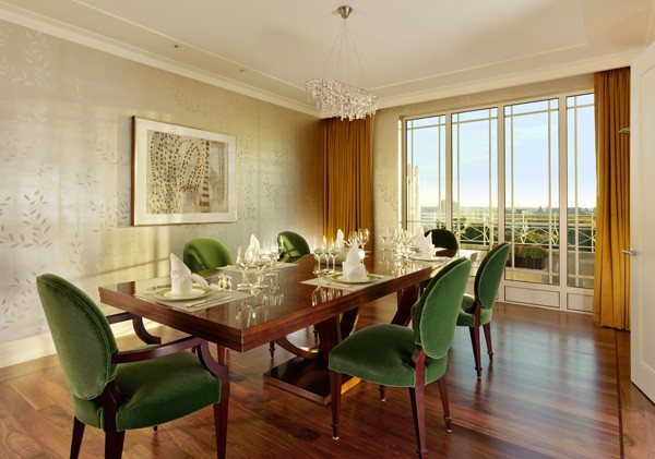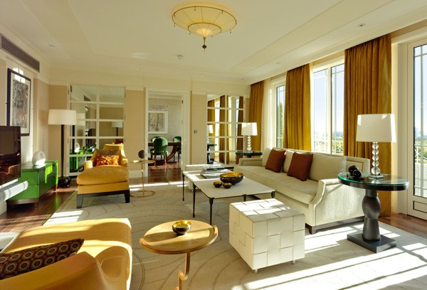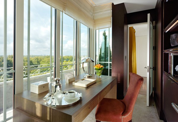 - Terrace Suite: с видом на Hyde Park и Knightsbridge; состоит из спальни, кабинета, гардеробной, гостиной, столовой, 2 ванных комнат и террасы. Бесподобная дизайнерская концепция номера, созданная Александрой Шампалимо, гармонично соотносит внутреннее оформление с открывающимися видами. Интерьеры оформлены в серых, желтых и зеленых тонах. Роскошные стены, обитые кожей, контрастируют с венецианской штукатуркой и величественным камином из итальянского мрамора.