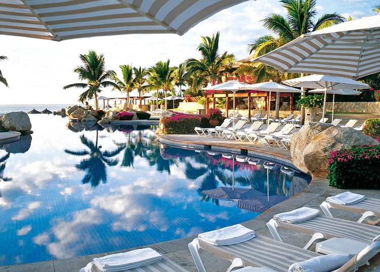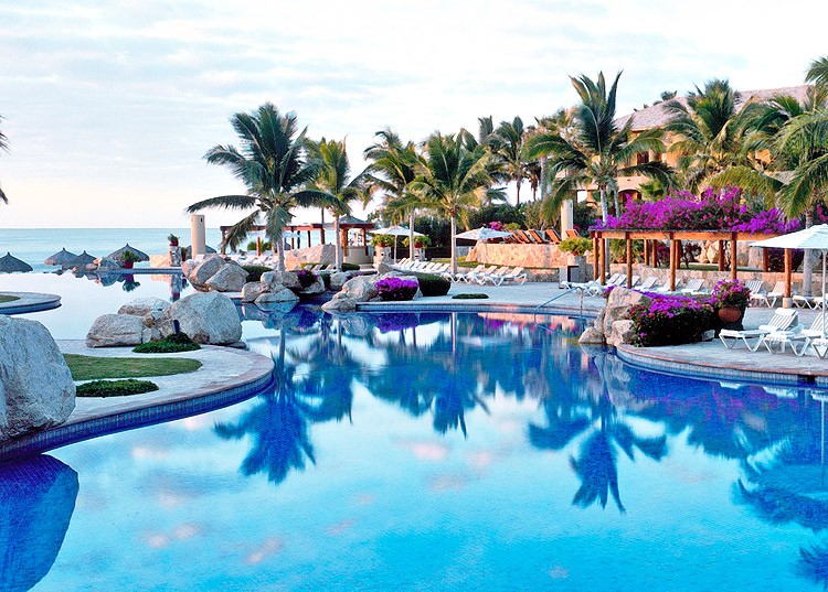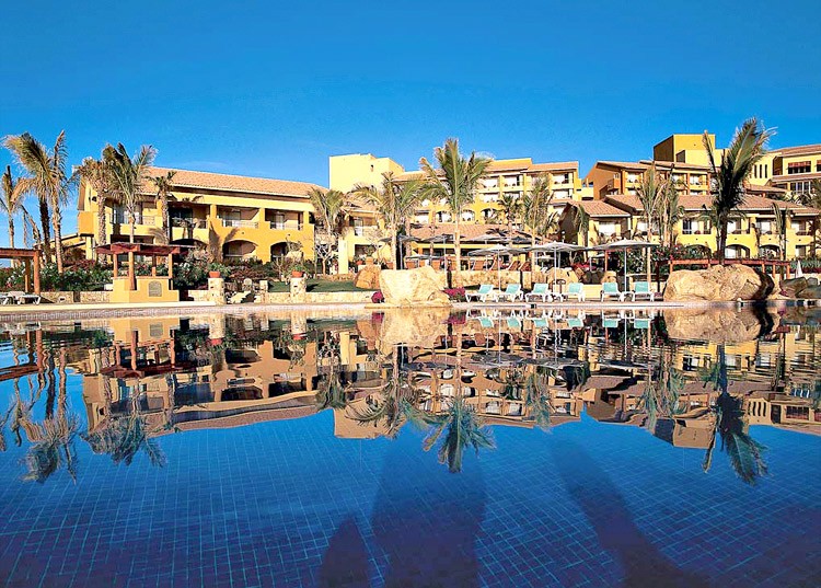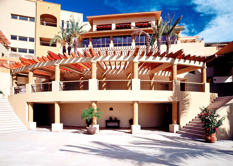 между городами Кабо Сан-Лукас и Сан-Хосе-дель-Кабо, в 10 минутах от центра Кабо Сан Лукас с его барами, ресторанами и ночными клубами. На берегу песчаного пляжа.