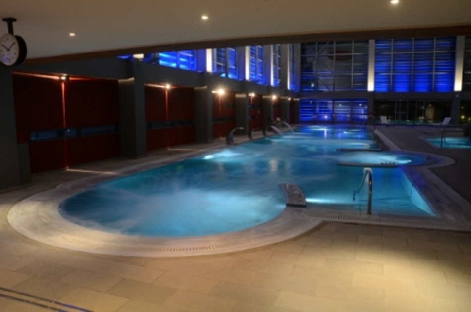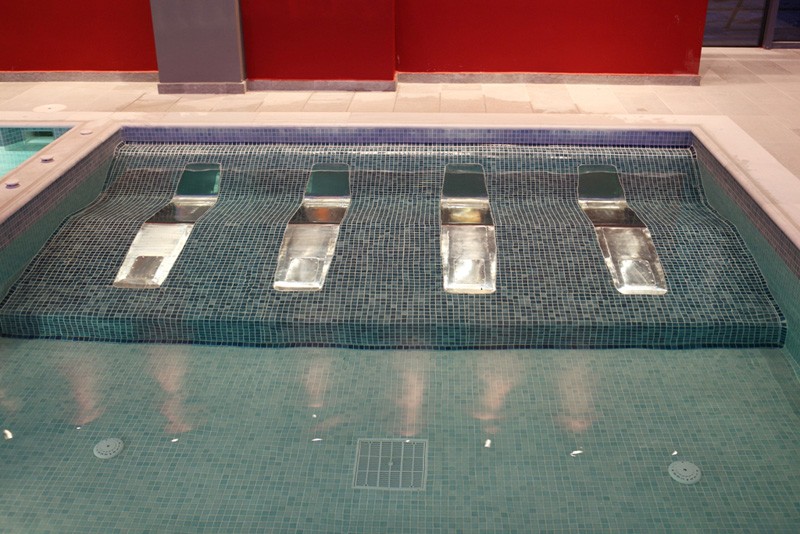 - 2 крытых подогреваемых бассейна с водопадами и струйным (jet) гидромассажем (подводный массаж) 201 м2 и 40 м2 соответственно.