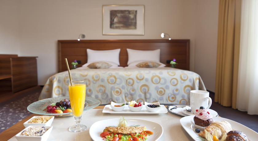 В ресторане готовят блюда словенской и интернациональной кухни. По утрам для гостей накрывают завтрак по меню или в виде «шведского стола». Гости могут позавтракать в номерах.