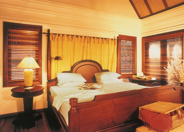 - Junior Suite: 70 м. Расположен в коттеджах с тростниковыми крышами на берегу (8 номеров), либо на первом или втором этажах коттеджей в саду, обращенных к пляжу (60 номеров), либо в коттеджах на сваях, расположенных на территории заповедника с рыбами (8 номеров) – купание в этой зоне запрещено. Состоит из спальни с гостиной зоной, ванной комнаты с ванной и отдельный душем, балкона или террасы. Возможны соединяющиеся номера.