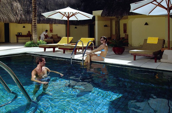 - Senior Suite: 130 м. Расположен в виллах с тростниковыми крышами: 9 номеров находятся на первом этаже, имеют собственный подогреваемый бассейн и выход к пляжу, 3 номера (без бассейна) расположены на сваях на краю заповедника с рыбами – купание в этой зоне запрещено. Состоит из гостиной с обеденной зоной, спальни, гардеробной, 2 ванных комнат (одна – с джакузи, другая — с душем), ванной открытого плана и меблированной террасы.