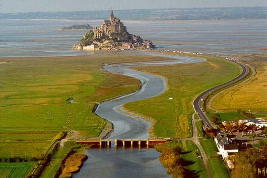 Место знаменито самыми высокими в мире (до 14 метров) приливами. В это время остров Сен-Мишель неприступен, и добраться до него можно только по узкой дамбе. Зато во время отлива в аббатство Сен-Мишель можно пройти прямо по морскому песку. Кстати, на заливных лугах Сен-Мишель жители городка откармливают баранов, мясо которых признано особенно вкусным из-за подсоленной травы.