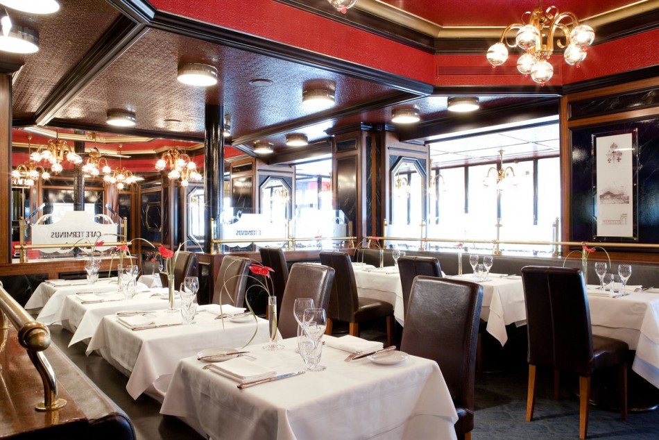 - в уютном ресторане Cafe Terminusс интерьерами в стиле Belle Epoqu, разработанными известным дизайнером Sonia Rykiel, гости на мгновение забудут о делах и проблемах и полностью насладятся оригинальным вкусом отличных блюд от знаменитого шеф-повара. Континентальный завтрак гости могут заказать непосредственно в номер с 6-00 до 12-00, в зале завтрак-буфет в американском стиле накроют с 6-30 до 10-00 утра.