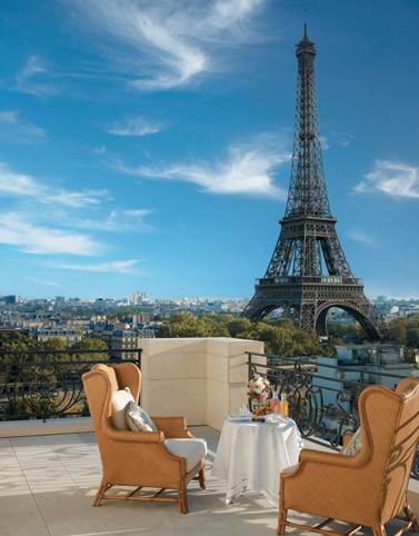 - Eiffel terrace room (50-56 кв. м): терраса (20 кв. м), спальня с гостиной зоной (кровать king-size или две отдельные кровати), ванная комната с ванной и душевой кабиной с функцией «тропический дождь». Вид на Сену, Эйфелеву башню и город. Возможно присоединение дополнительной спальни;